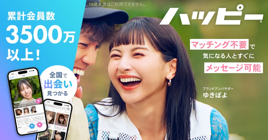 【1位】ハッピーメール|国内最大級3500万人で地方でも気軽に出会える